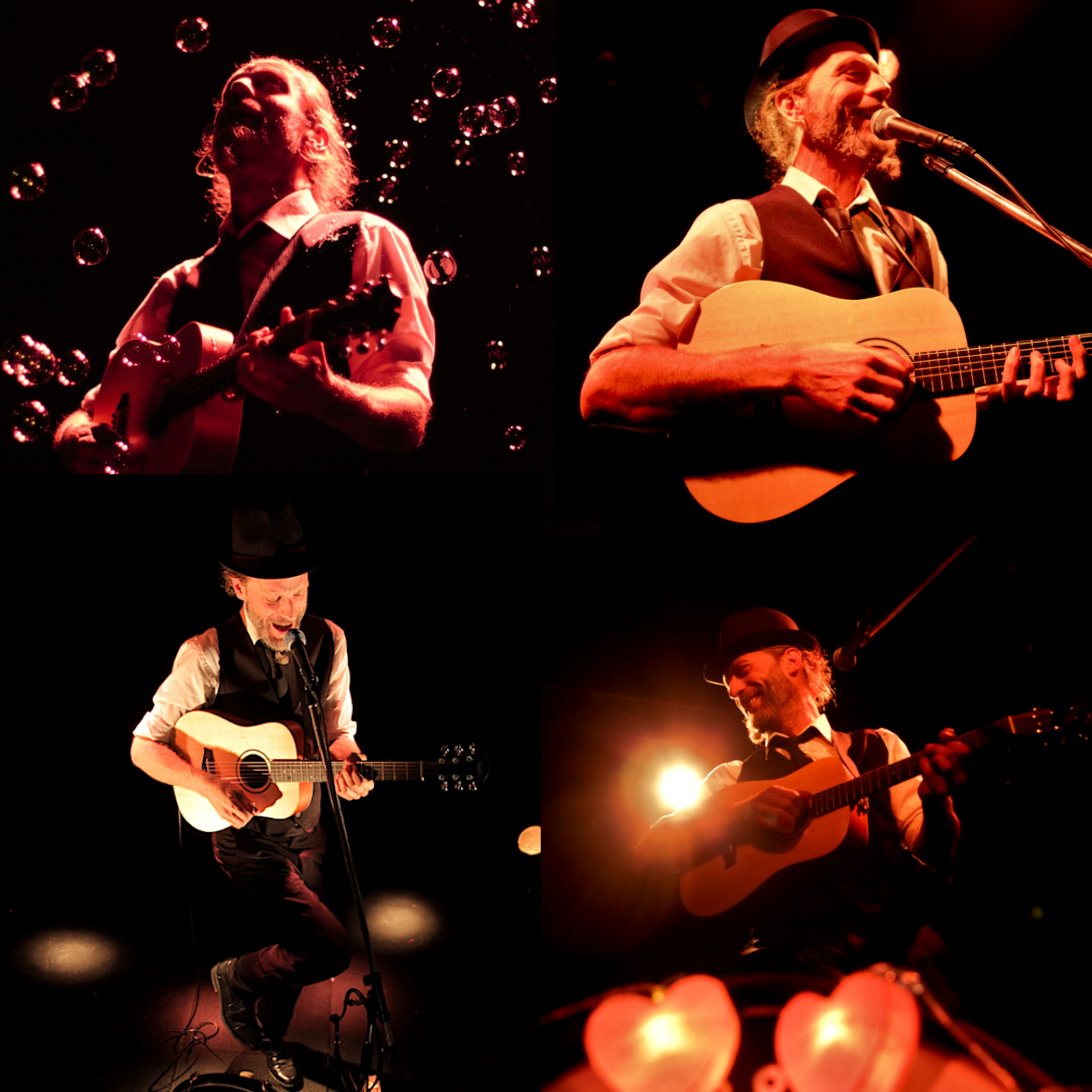 Après les Voilà Voilà en trio, voilà aujourd’hui le solo ! Et cette nouvelle proposition de l’âme du groupe est absolument emballante ! Car non seulement le bonhomme est un auteur-compositeur-chanteur de talent (ça on le savait !), mais ce dont on se doutait moins, c’est qu’il tiendrait la scène à lui tout seul avec une pêche, un engagement et une folie démultipliés ! Et ça fait sacrément plaisir à écouter et à voir ! Showman survolté et tendre, excellent musicien toujours proche de son public, il déroule ses airs bluesy, folk et funk qui invitent à mordre la vie à pleines dents.