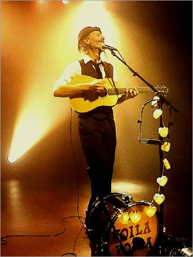 Dans le pur style One man band, LE VOILA VOILA se déchaîne avec une sensibilité à fleur de mot et une énergie follement folk ! Au plus proche du public, il livre un show en solo où l'on prend la vie comme un cadeau et où l'éclat d'un rire vaut toutes les tirelires, avec un généreux goût de liberté qui donne le smile en chantant les ami-es, les amours, les embêtes ! Alors CHAUD DEVANT et dedans...
